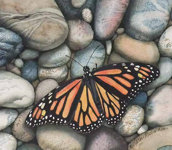 Monarch On The Rocks Watercolour On Panel 12 X 12 Sold Karen Richardson Art Studio